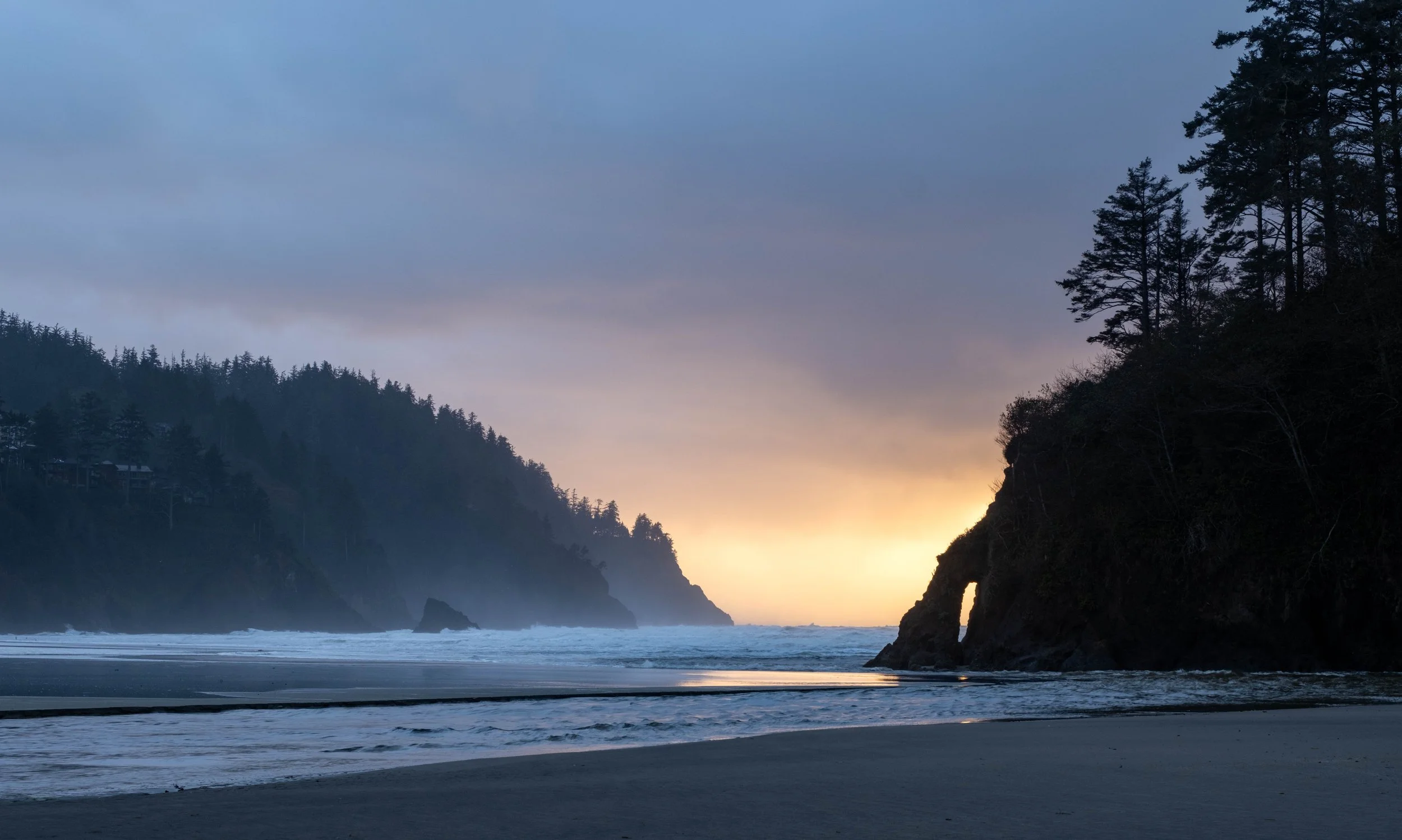 In order to get to Neskowin Beach, I had to drive through Suislaw National Forest, and with the sky still very much overcast and angry, the mountain pass was quite dark. Which is how I nearly died. With the high winds and heavy rain, a sizable pine had fallen onto the road and was blocking 2 of the 3 lanes. There are no lights along the road, and I barely had enough time to dodge into the oncoming to avoid hitting it. By sheer luck, no one was coming in the other direction, and I spent the next mile being thankful for my quick reflexes while trying to get my heart rate back down.